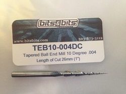 Фреза твердосплавная коническая сферическая TEB10-004DC для работы по воску. Фреза Bits&Bits Tapered Ball End Mill TEB10-004DC по воску для станков ЧПУ.